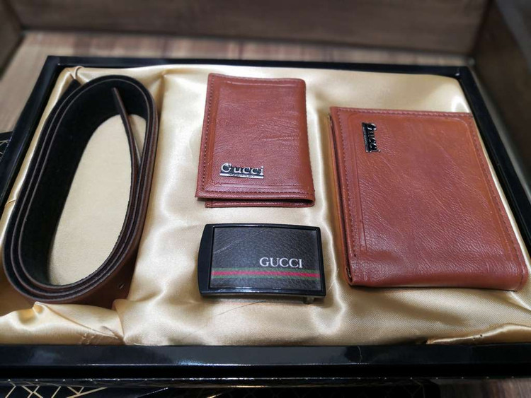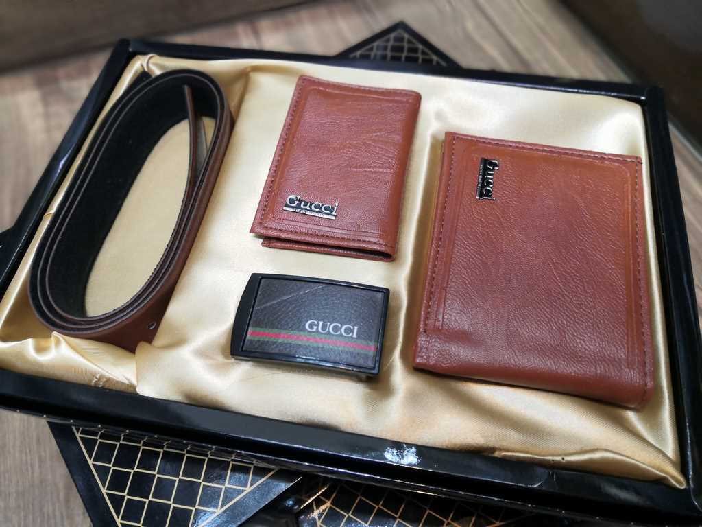 خرید ست کیف پول جیبی 3 تیکه چرم مصنوعی برند گوچی