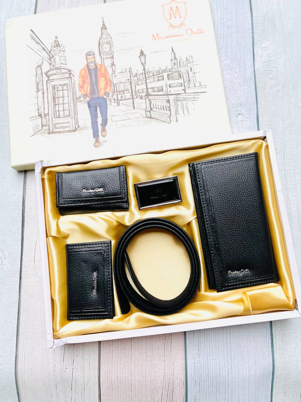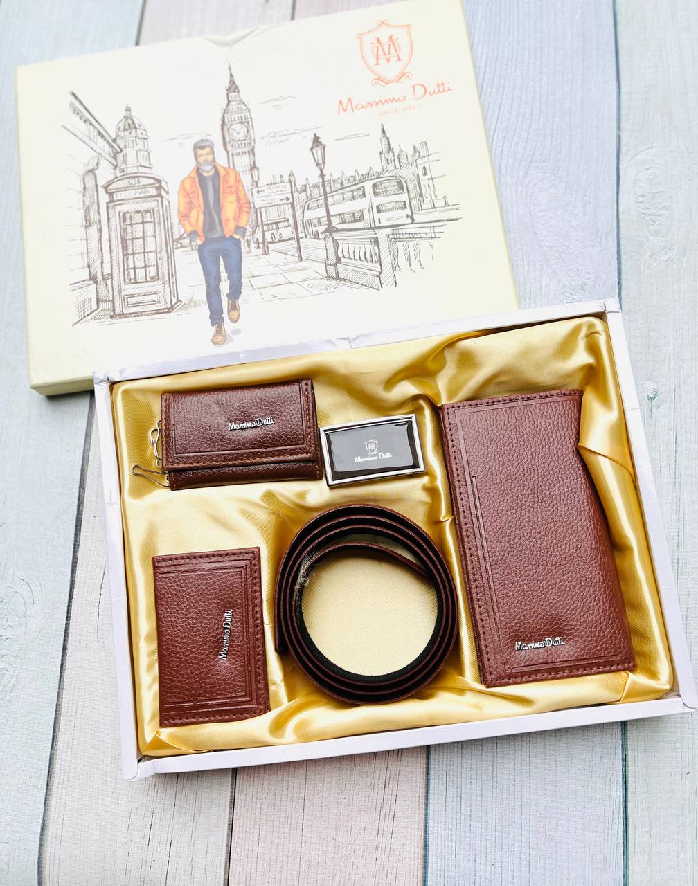 خرید ست هدیه کیف پول مردانه 4تیکه چرم مصنوعی با جعبه هاردباکس دو طبقه برند ماسیمو دیوتی