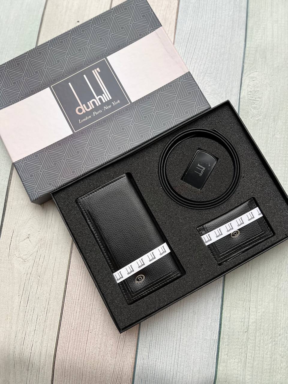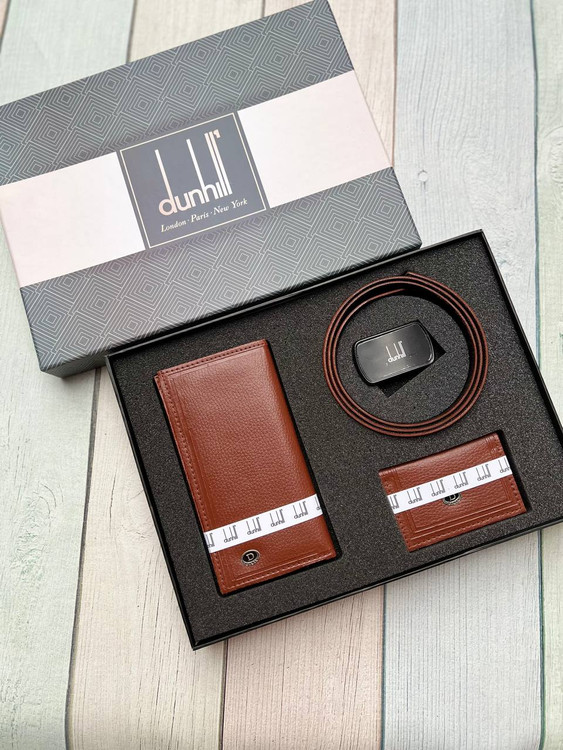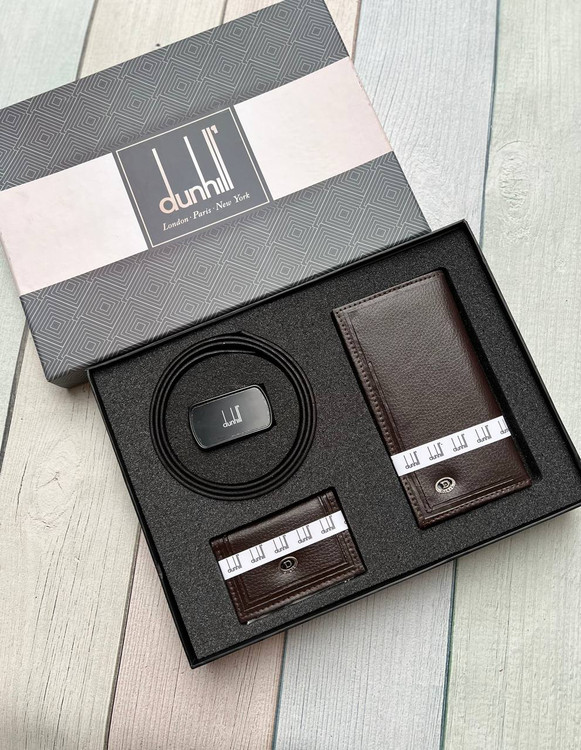 خرید ست هدیه کیف پول مردانه3 تیکه چرم مصنوعی با جعبه هاردباکس برند دانهیل